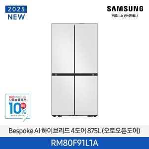 ★으뜸효율★[삼성][25년NEW] 삼성 Bespoke AI 하이브리드 4도어 875L 코타화이트 (오토오픈도어) [RM80F91L1A] 10월 요약정보 및 구매